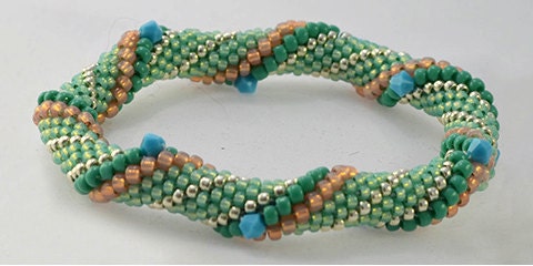 1. Minty Green - Original color - Turquoise Swarovski crystals, high quality glass seed beads in permanent finish silver, dark peach, light teal green and light grass green (2nd picture).